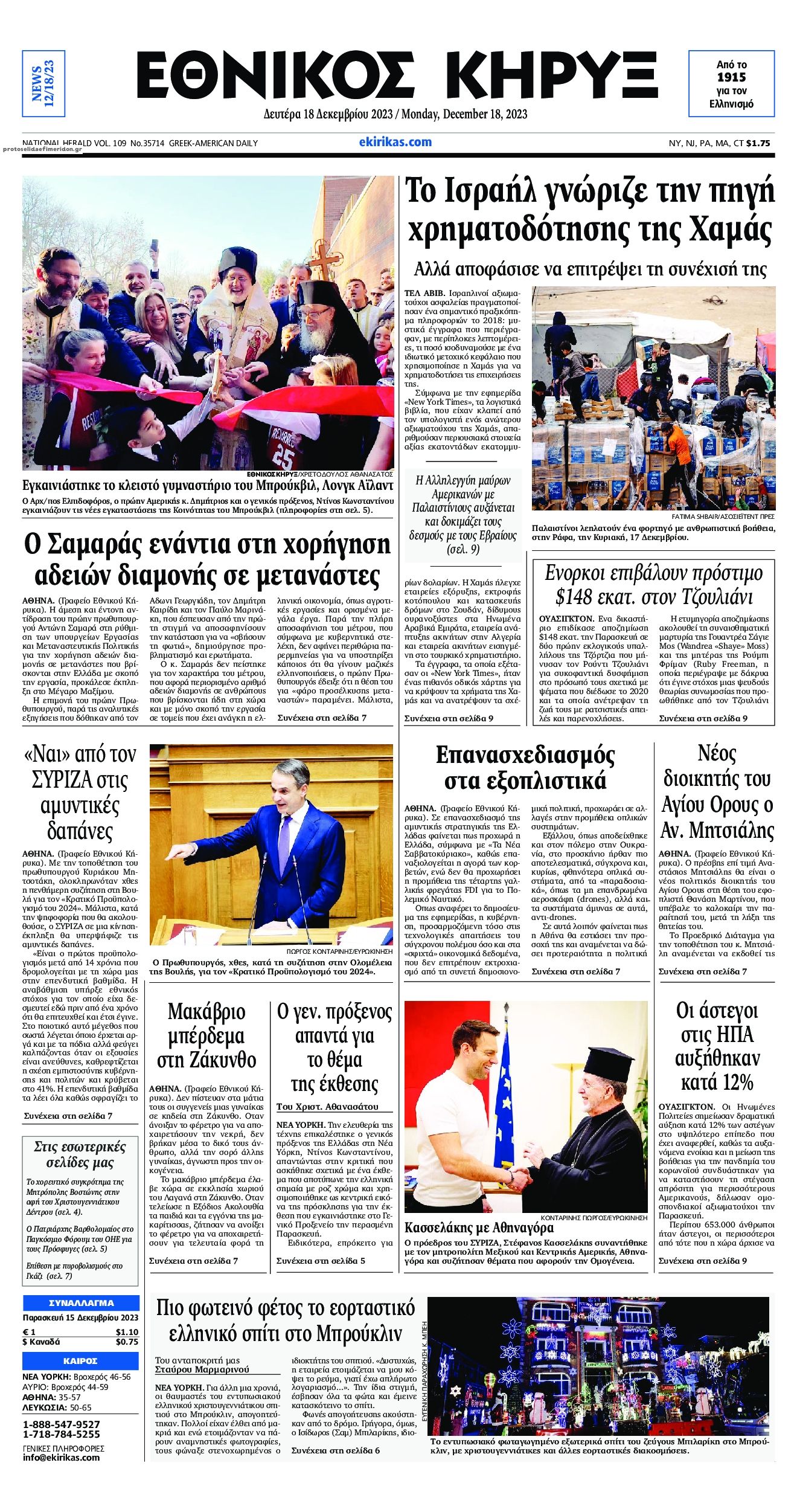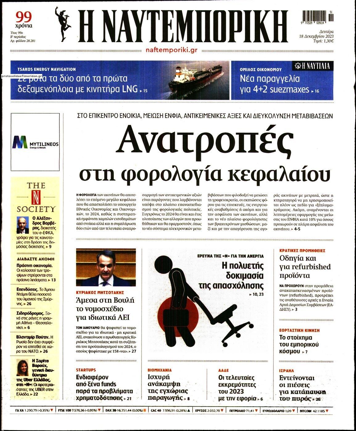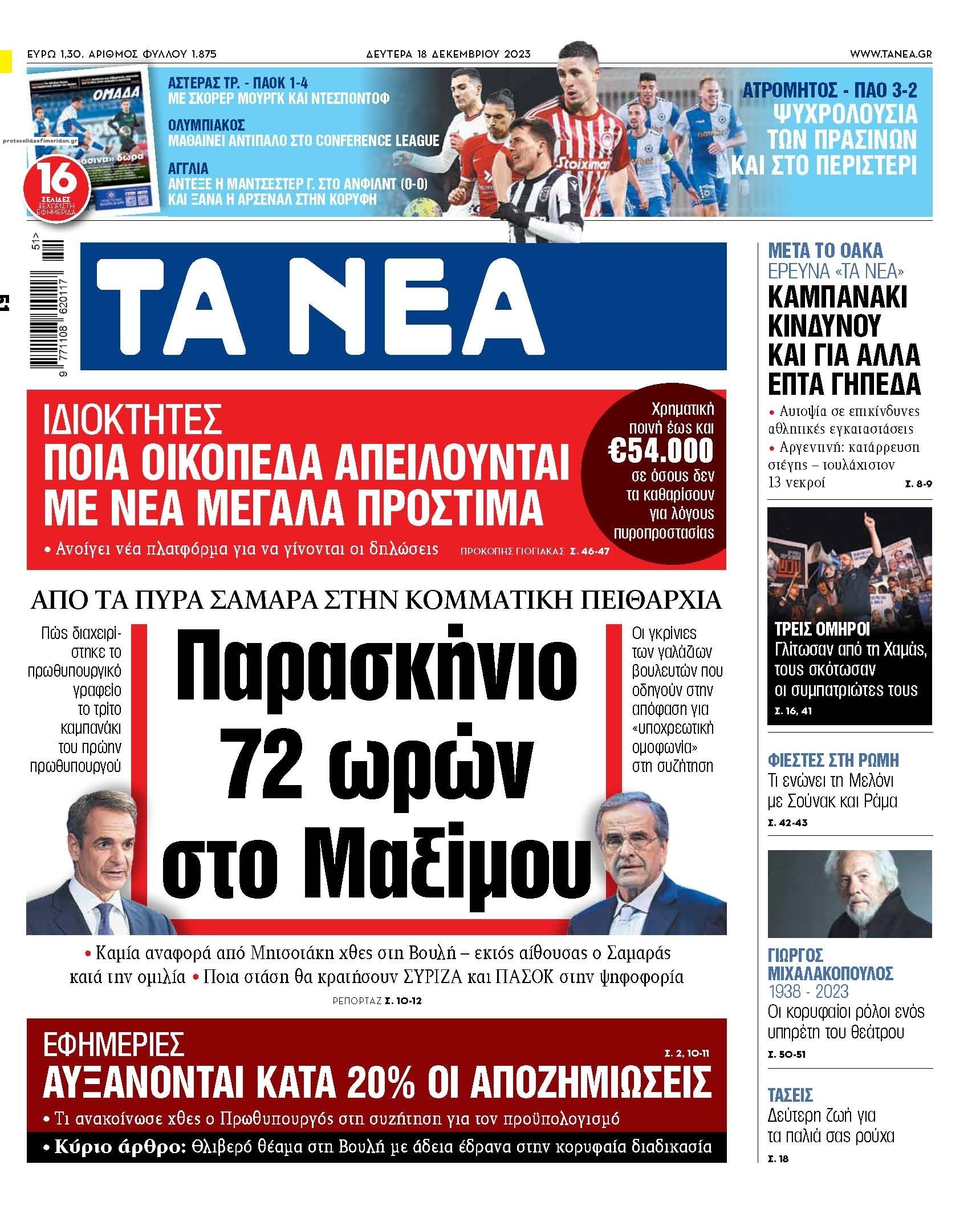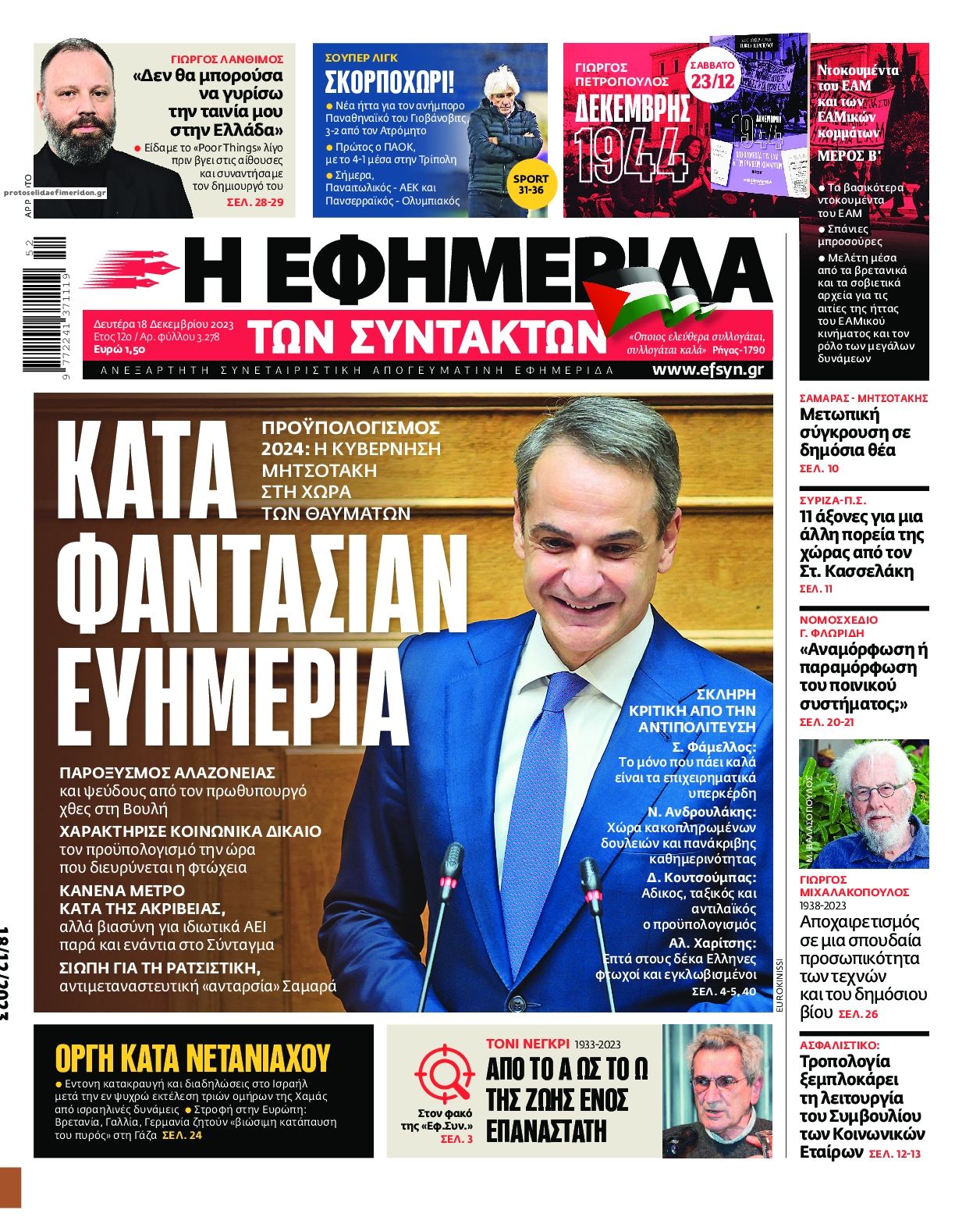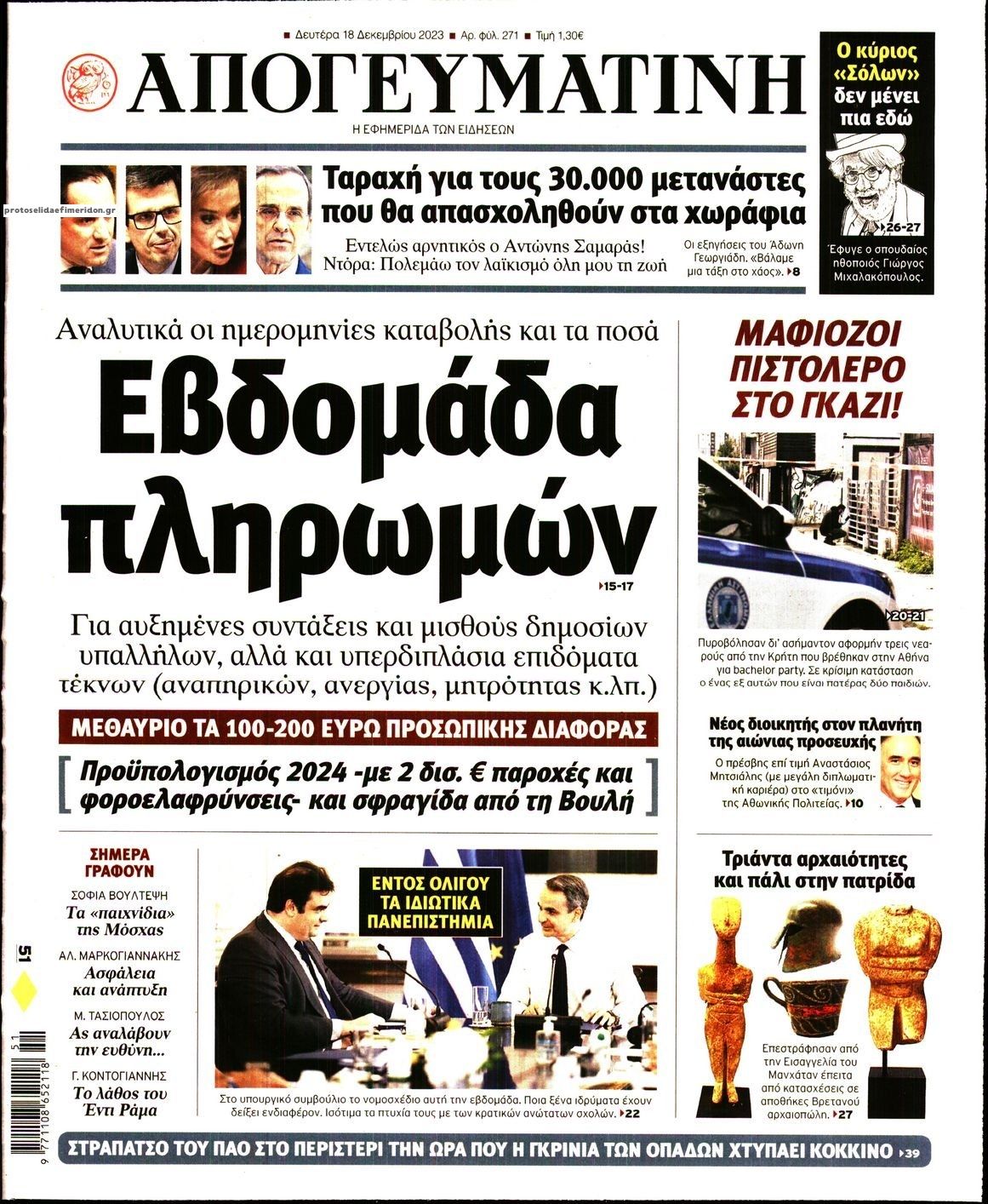 Media Οι εφημερίδες της Δευτέρας 18 Δεκεμβρίου 2023 18 Δεκεμβρίου 2023 FacebookTwitterPinterestWhatsApp Οι εφημερίδες της Δευτέρας 18 Δεκεμβρίου 2023