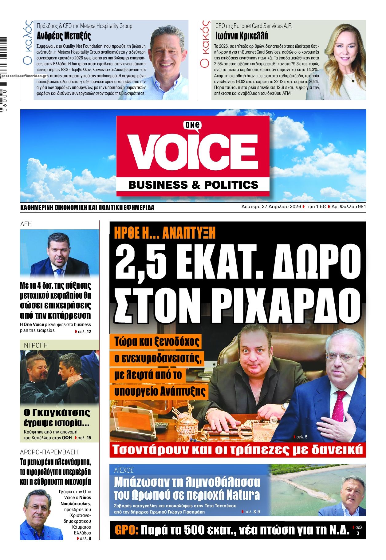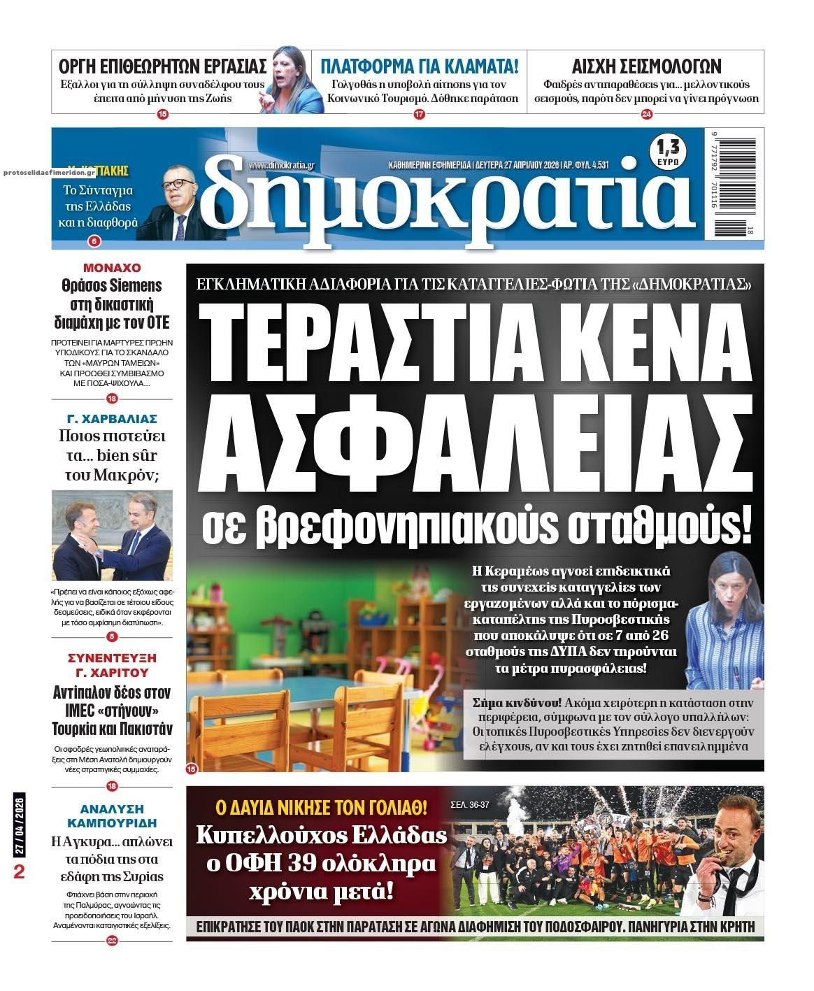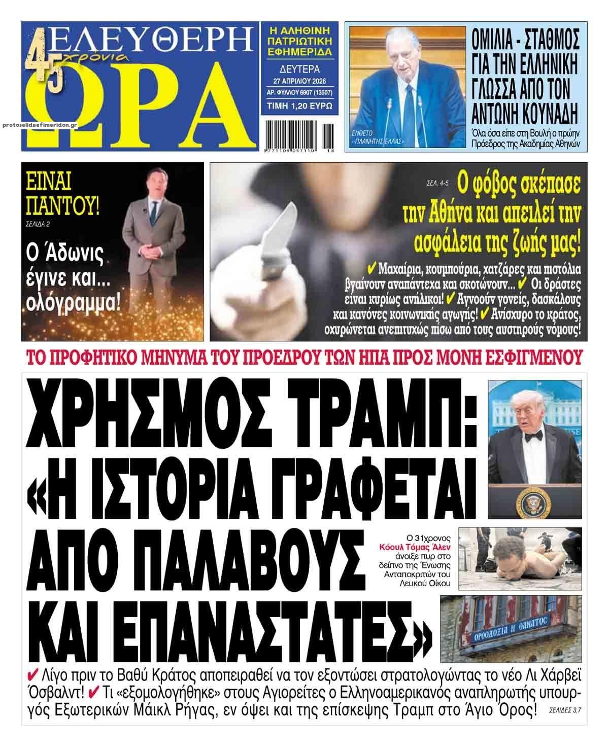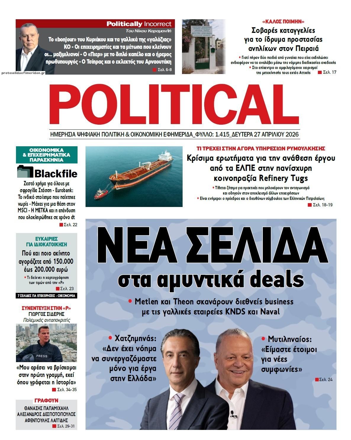 Media Οι εφημερίδες της Δευτέρας 27 Απριλίου 2026 27/04/2026 08:46 FacebookXPinterestWhatsApp Οι εφημερίδες της Δευτέρας 27 Απριλίου 2026