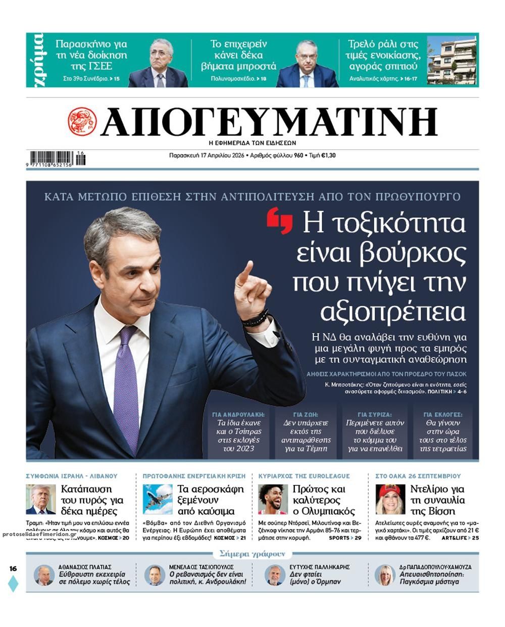 Media Οι εφημερίδες της Παρασκευής 17 Απριλίου 2026 17/04/2026 09:08 FacebookXPinterestWhatsApp Mass Image Compressor Compressed this image. https://sourceforge.net/projects/icompress/ Οι εφημερίδες της Παρασκευής 17 Απριλίου 2026