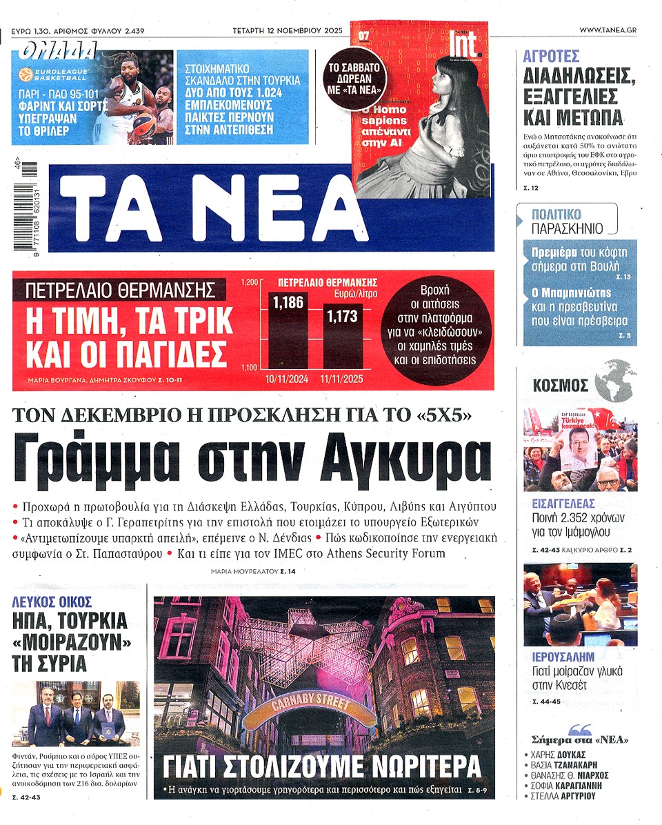 Media Οι εφημερίδες της Τετάρτης 12 Νοεμβρίου 2025 12/11/2025 08:27 FacebookXPinterestWhatsApp Οι εφημερίδες της Τετάρτης 12 Νοεμβρίου 2025
