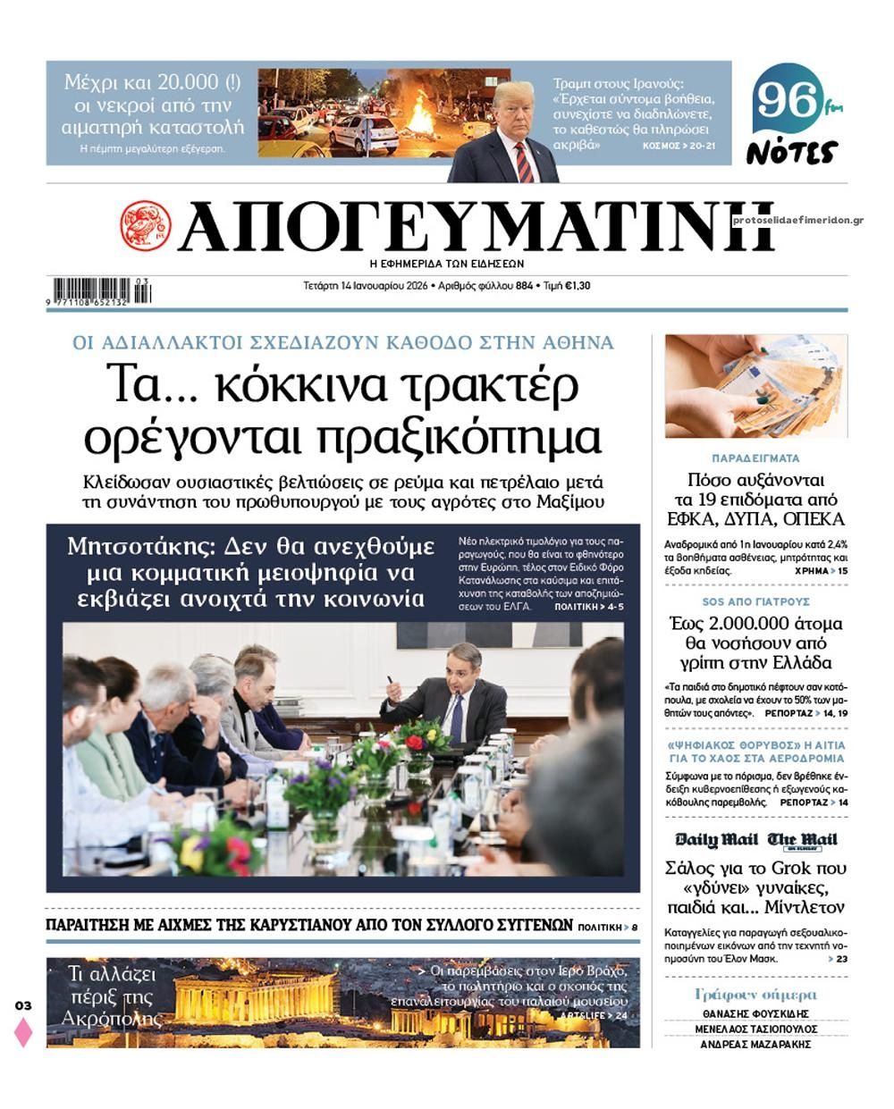 Media Οι εφημερίδες της Τετάρτης 14 Ιανουαρίου 2026 14 Ιανουαρίου 2026 FacebookTwitterPinterestWhatsApp Mass Image Compressor Compressed this image. https://sourceforge.net/projects/icompress/ Οι εφημερίδες της Τετάρτης 14 Ιανουαρίου 2026
