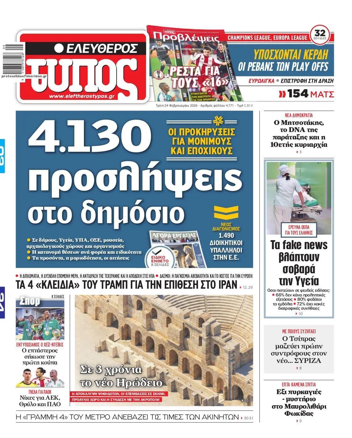 Media Οι εφημερίδες της Τρίτης 24 Φεβρουαρίου 2026 24 Φεβρουαρίου 2026 FacebookTwitterPinterestWhatsApp Mass Image Compressor Compressed this image. https://sourceforge.net/projects/icompress/ Οι εφημερίδες της Τρίτης 24 Φεβρουαρίου 2026