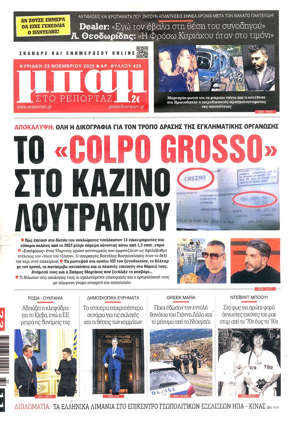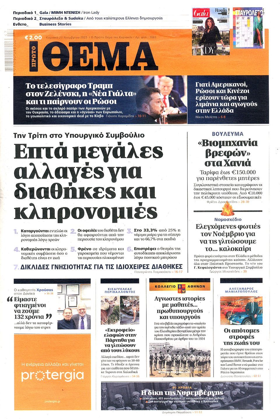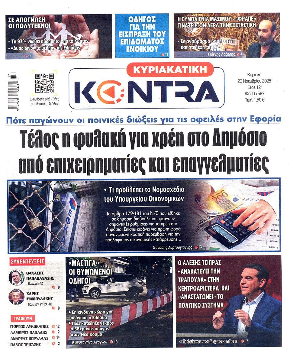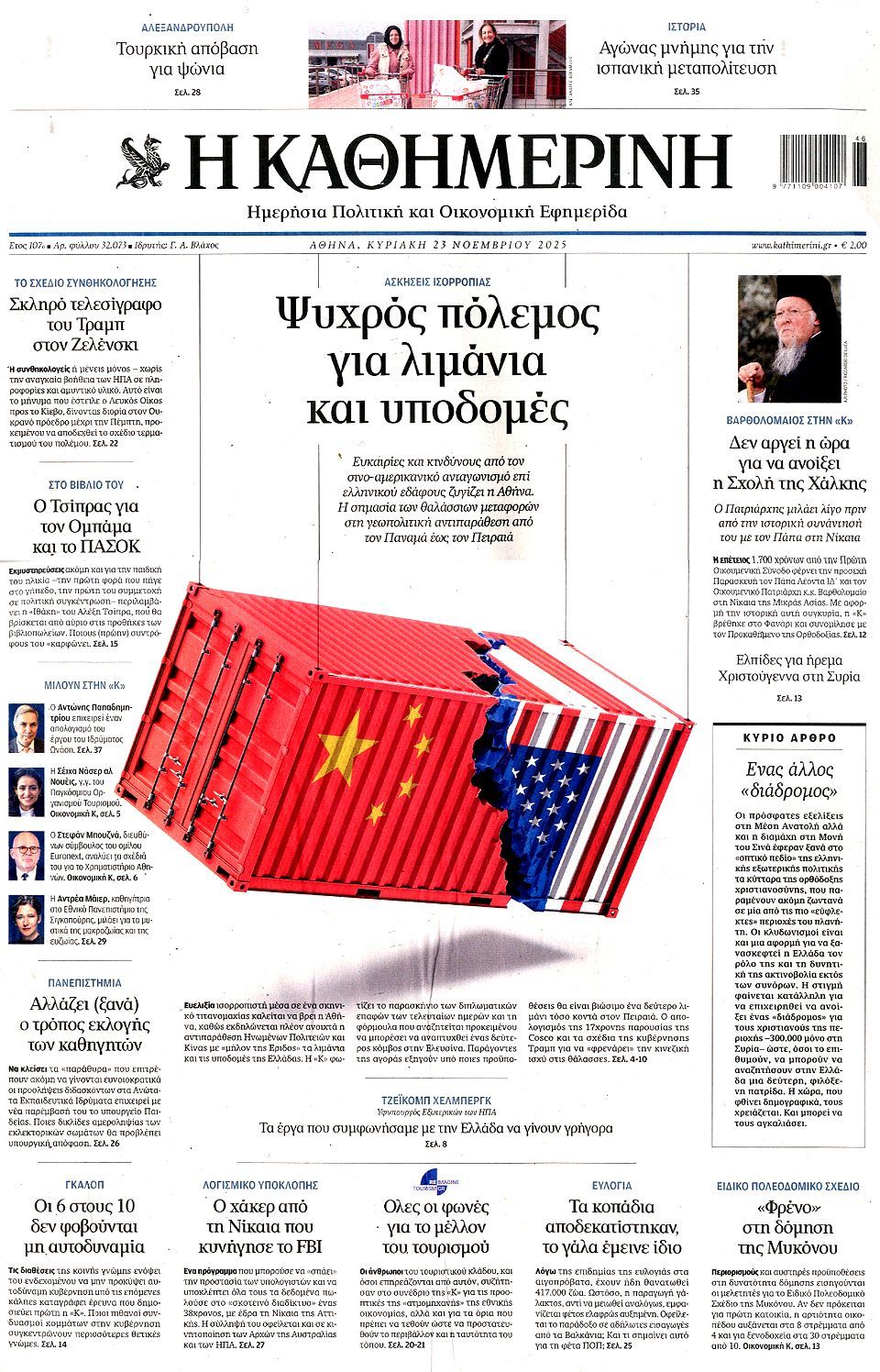 Mediatop2 Τα πρωτοσέλιδα των εφημερίδων της Κυριακής 23 Νοεμβρίου 2025 22 Νοεμβρίου 2025 FacebookTwitterPinterestWhatsApp Διαβάστε τα πρωτοσέλιδα των εφημερίδων της Κυριακής 23 Νοεμβρίου 2025