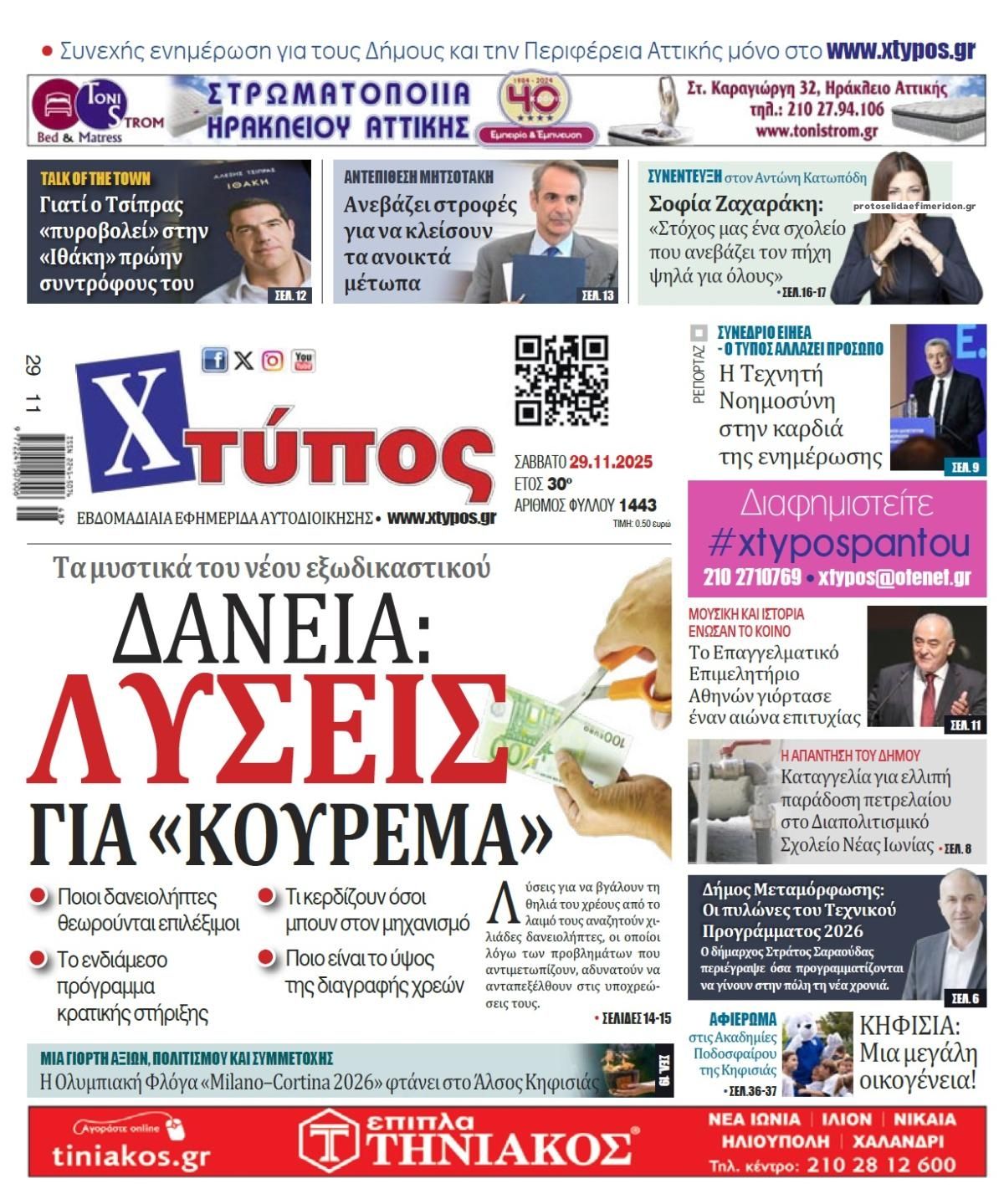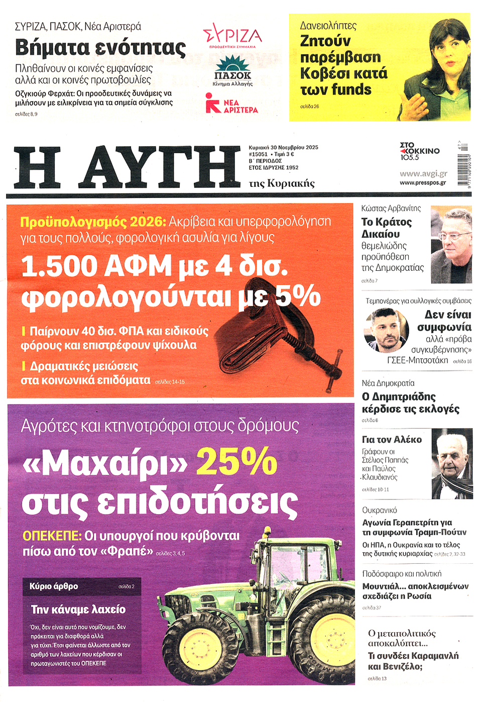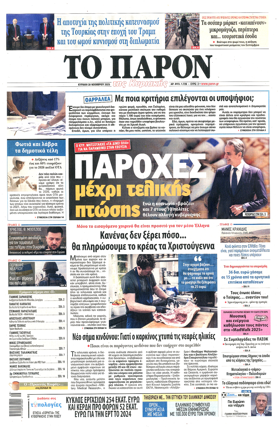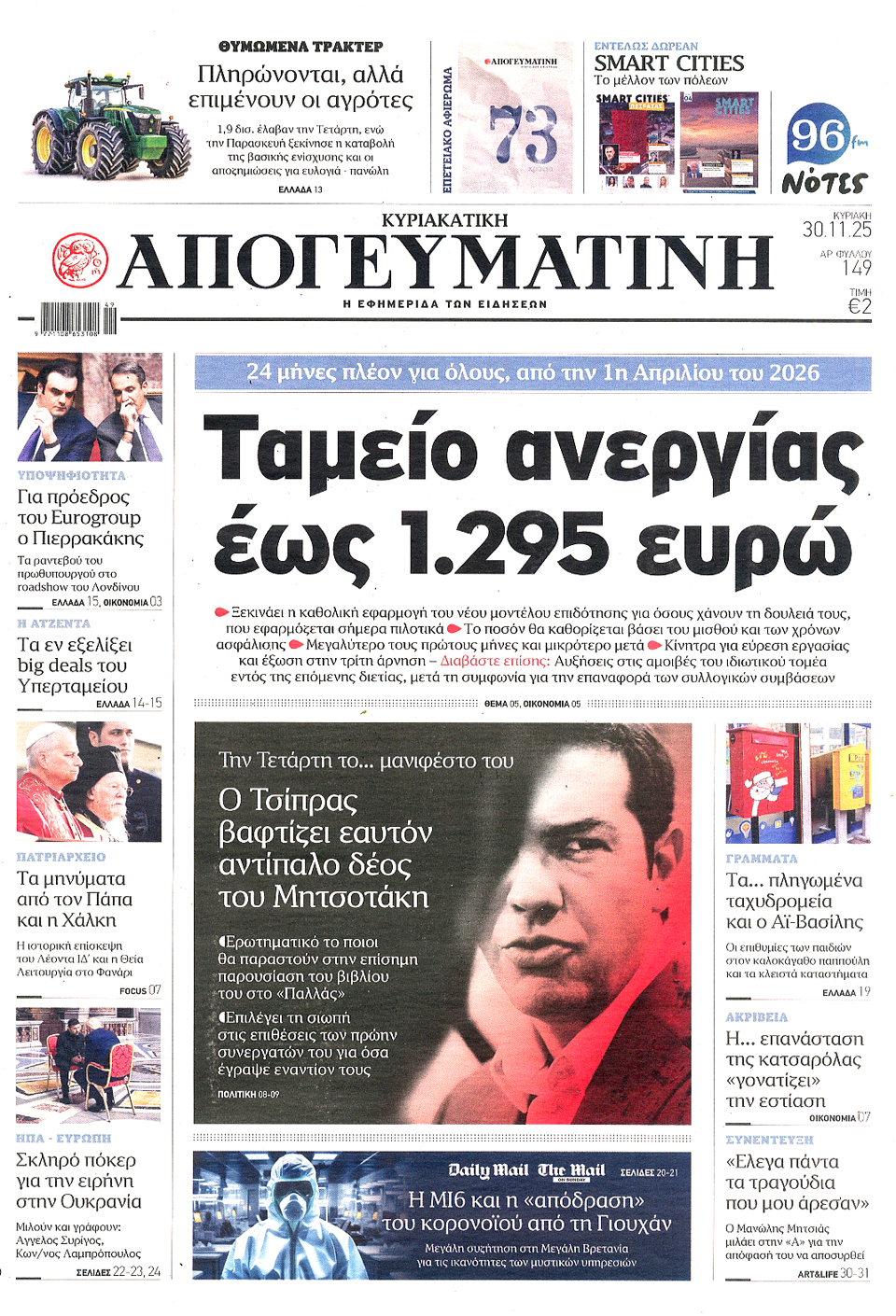 Mediatop2 Τα πρωτοσέλιδα των εφημερίδων της Κυριακής 30 Νοεμβρίου 2025 29 Νοεμβρίου 2025 FacebookTwitterPinterestWhatsApp Mass Image Compressor Compressed this image. https://sourceforge.net/projects/icompress/ Διαβάστε τα πρωτοσέλιδα των εφημερίδων της Κυριακής 30 Νοεμβρίου 2025