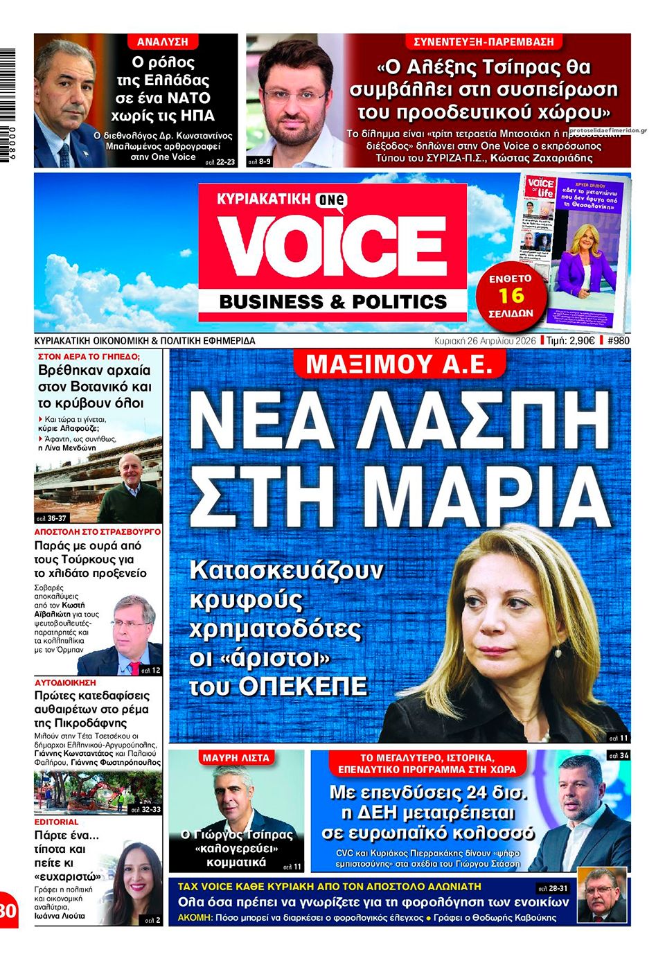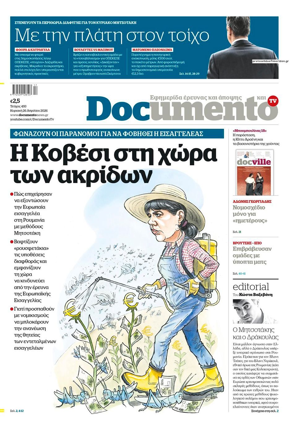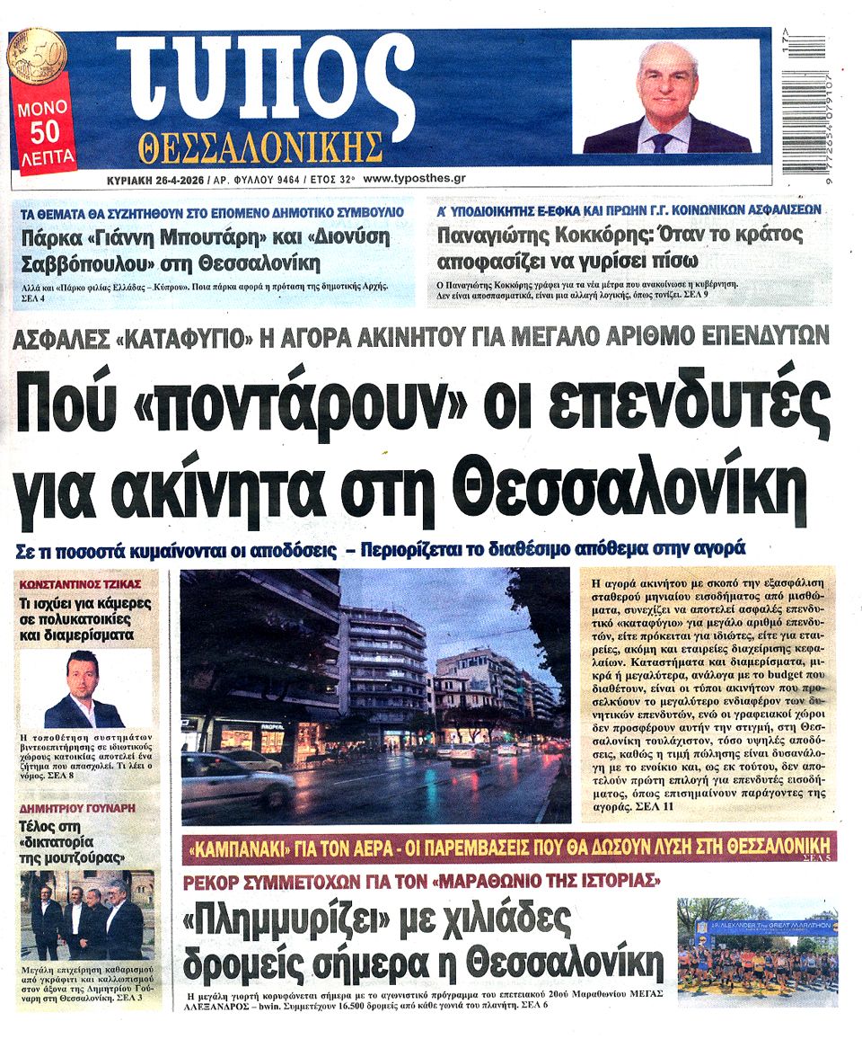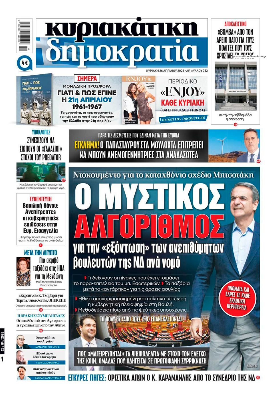 Mediatop2 Τα πρωτοσέλιδα των εφημερίδων της Κυριακής 26 Aπριλίου 2026 25/04/2026 17:24 FacebookXPinterestWhatsApp Διαβάστε τα πρωτοσέλιδα των εφημερίδων της Κυριακής 26 Aπριλίου 2026