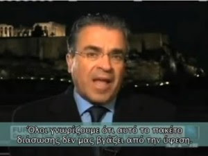 Στάθηκε ακόμα στο γεγονός ότι πρόκειται για ένα »ευρωπαϊκό πρόβλημα» και ότι ενώ πολλές χώρες φτωχαίνουν, άλλες, όπως η Γερμανία πλουτίζουν. Έκλεισε τη σύνδεση , τέλος, λόεγοντας πως αν η Ελλάδα χρεοκοπήσει θα ακολουθήσουν και άλλες όπως η Πορτογαλία, η Ισπανία και η Ιταλία.